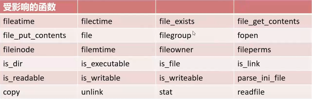 • 要有文件操作函数,如:file_exists()fopen()file_get_contents()