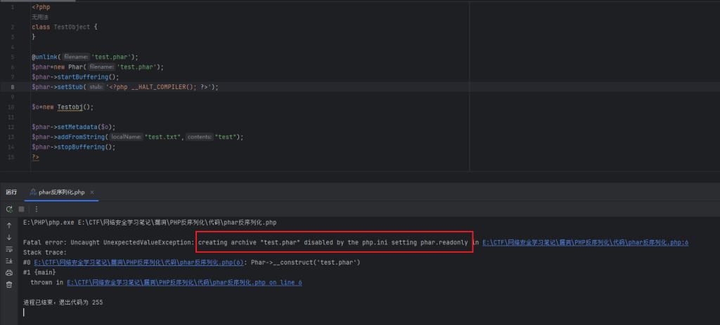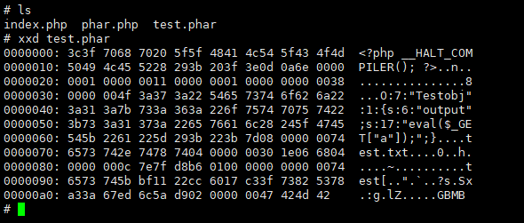 • 生成一个phar文件:在mate-data里放置一个包含TestObject()序列化字符串